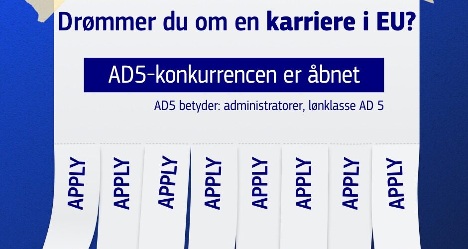 Drømmer du om en karriere i de europæiske institutioner? Så er der gode nyheder. Det Europæiske Personaleudvælgelseskontor (EPSO) har netop åbnet AD5 udvælgelses. Består man kommer man på en reserveliste, som EU’s institutioner, organer og agenturer kan anvende ved ansættelsen af nye tjenestemænd. Der er tale om ansættelse på sagsbehandlerniveau, som i EU-institutionerne kaldes “administrator”, med indplacering i lønklasse AD 5.